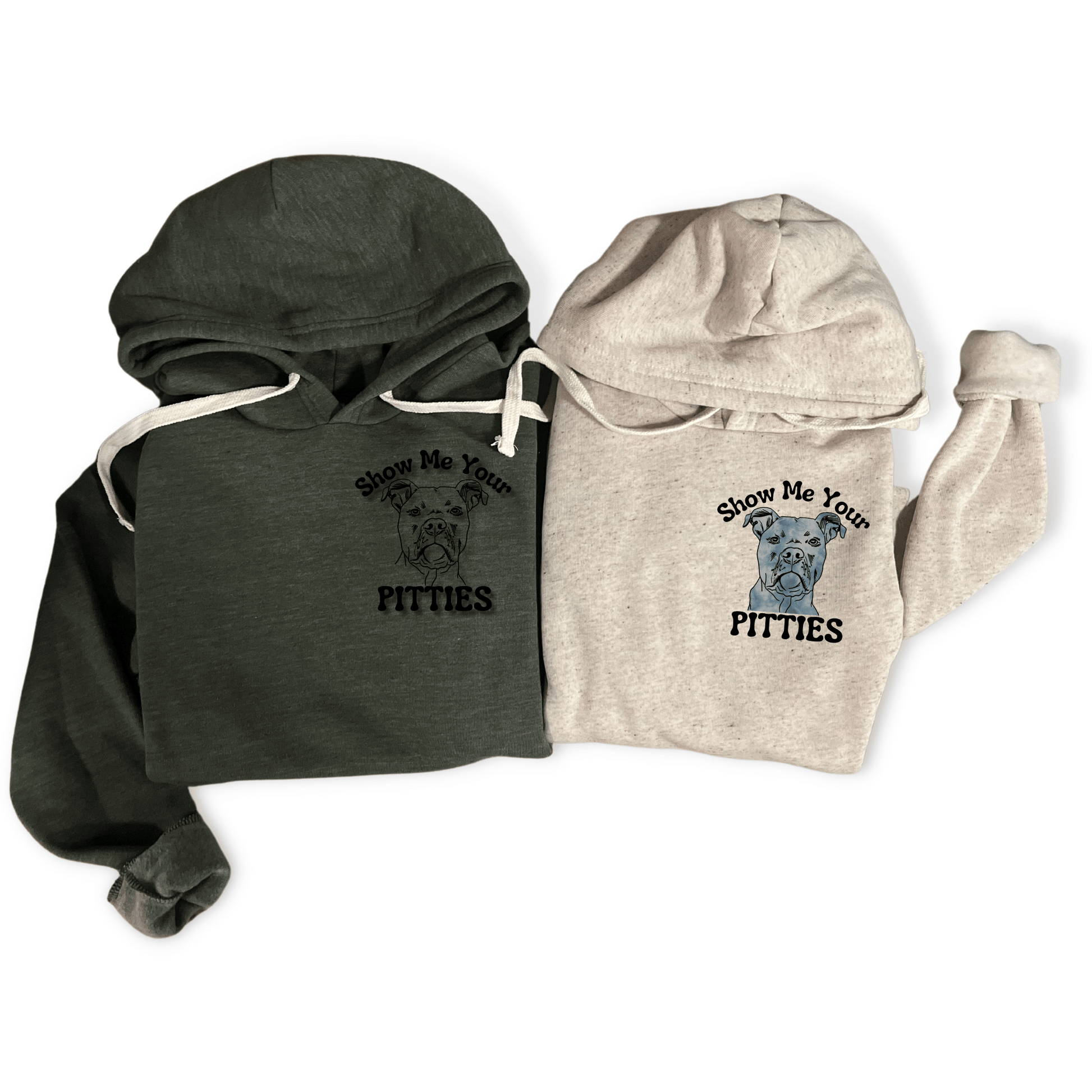 Introducing our "Show Me Your Pitties" Sweatshirt – a playful and stylish expression of love for our four-legged friends. Whether you prefer the classic crewneck or the snug hoodie style, this sweatshirt is designed for pet lovers who want to wear their passion with pride. Available in the inviting colors of Oatmeal or the rugged charm of Army Green, this sweatshirt lets you showcase your love for pets while expressing your personal style.
