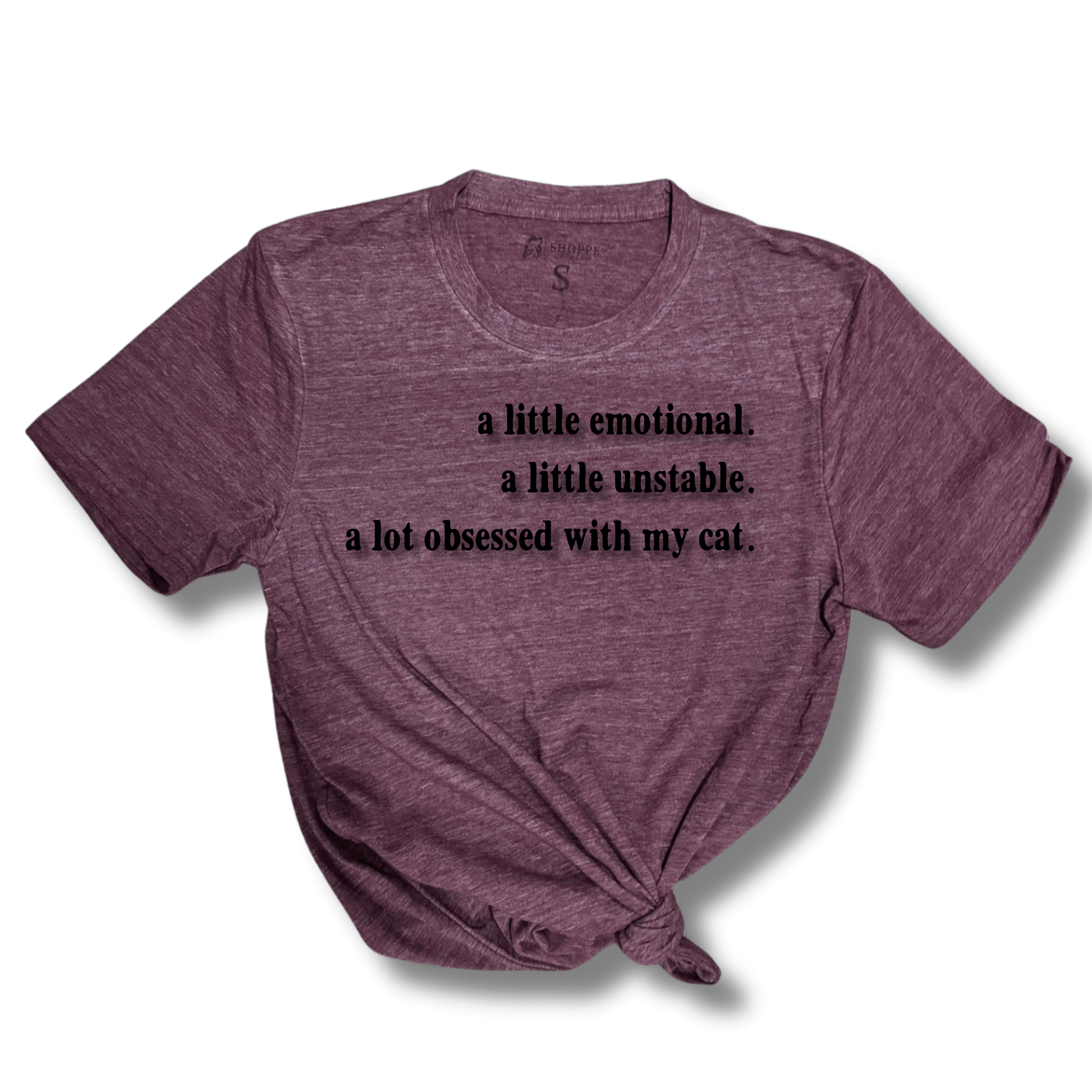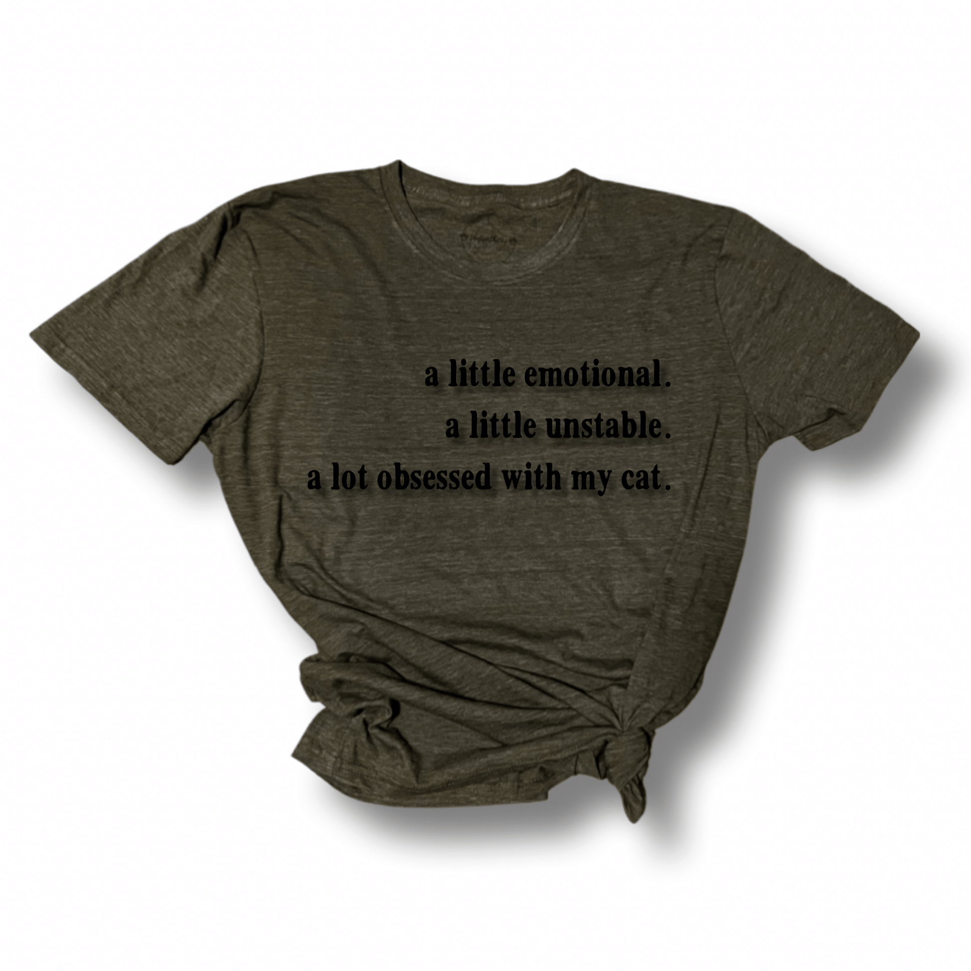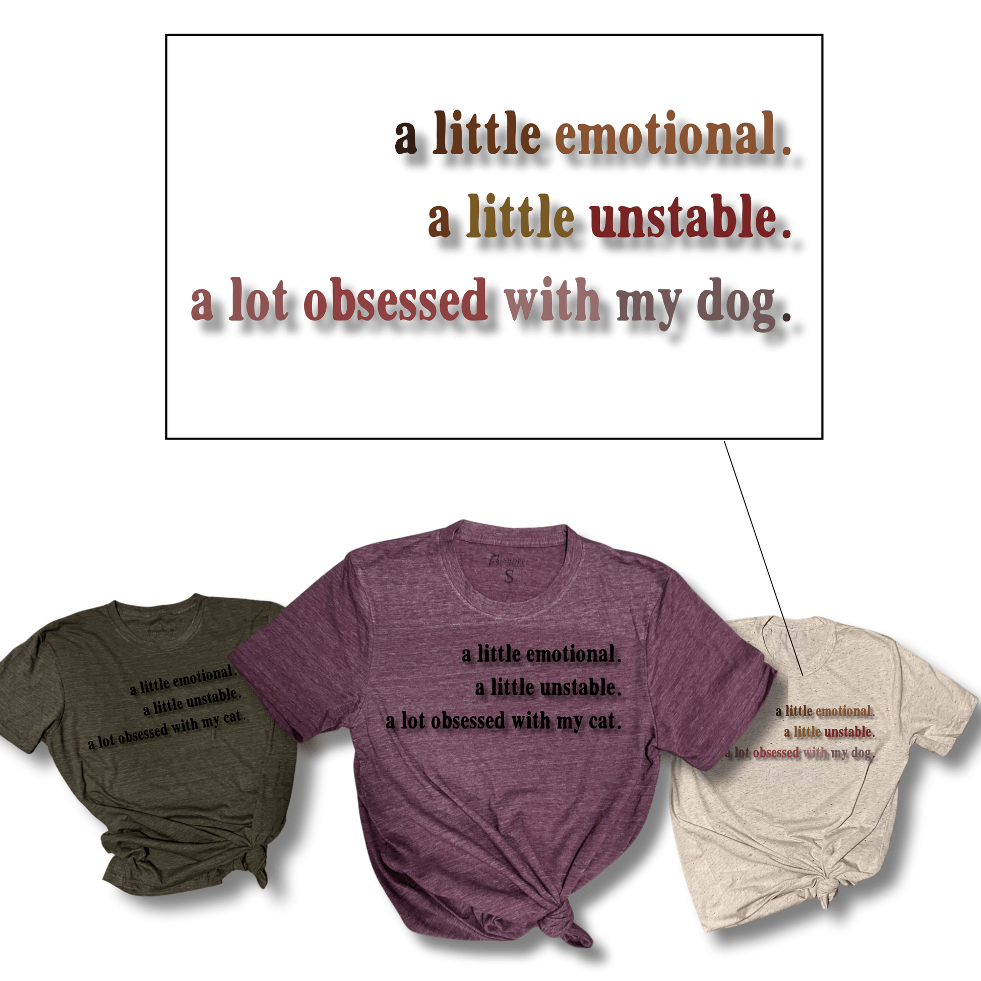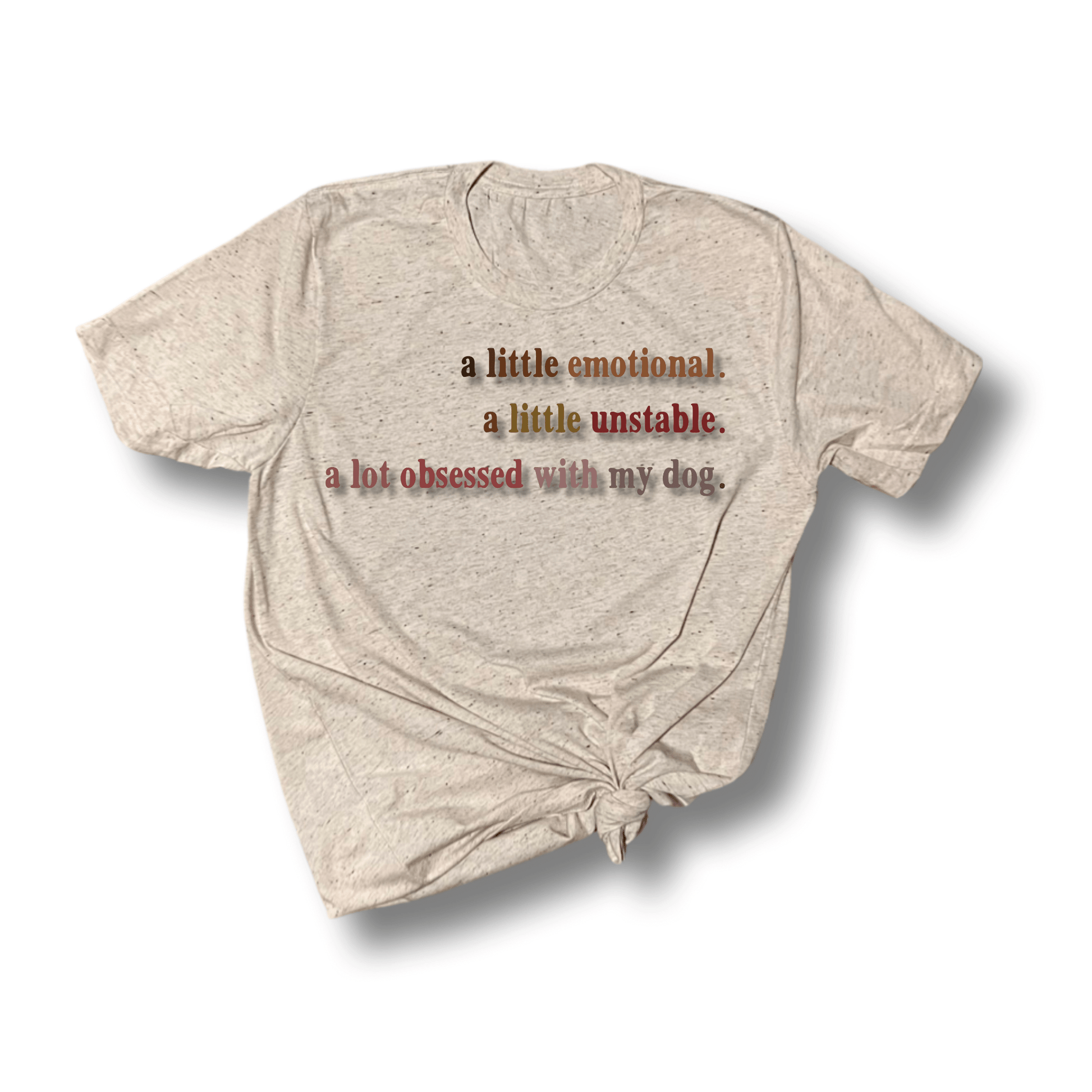 Embrace your dog obsession with our “Emotional, Unstable & Obsessed” T-Shirt, available in three colors – Oatmeal, Burgundy, and Army Green. Crafted from a luxurious tri-blend of cotton, rayon, and polyester, this very soft, high-quality T-Shirt is proudly made in the USA. Choose any pet to personalize your statement. Sizes range from XS to 3XL, ensuring a comfortable fit for everyone. For care, hand wash or use the delicate cycle, and opt for low temperature drying or air drying. Express your love for dogs and your sense of humor.