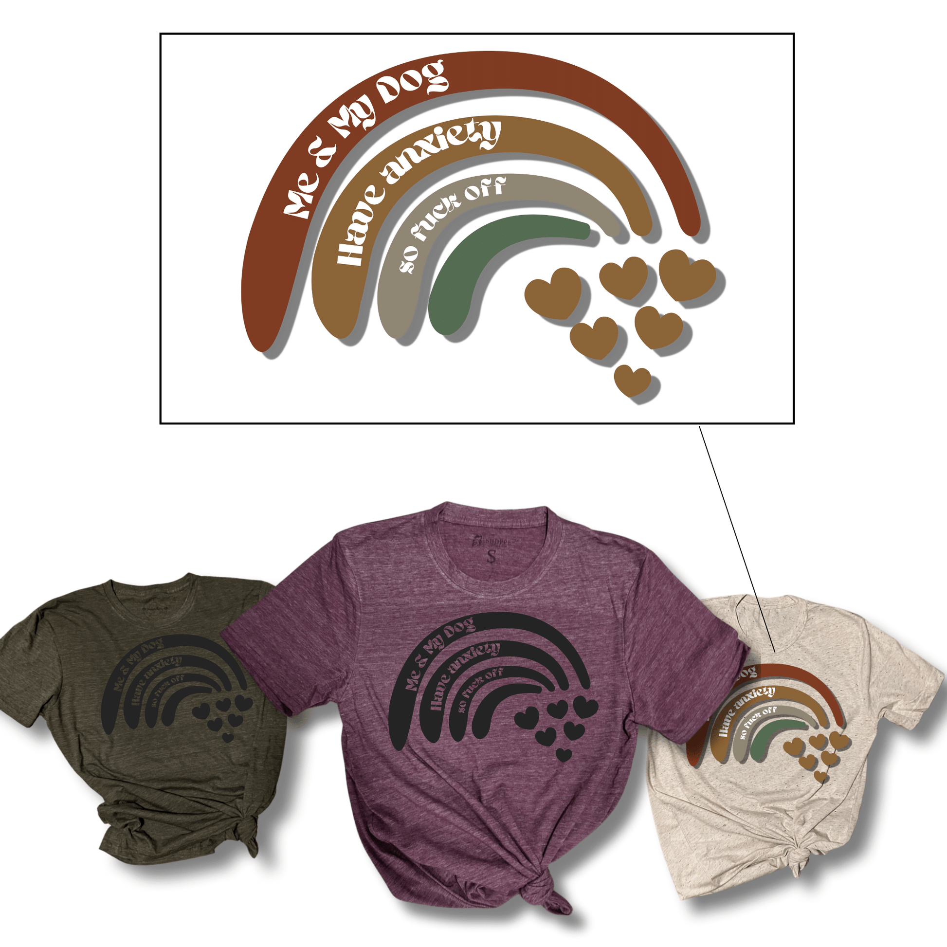 Express your personality with our “Me and My Dog Have Anxiety, So Fuck Off” T-Shirt, available in three colors – Oatmeal, Burgundy, and Army Green. Crafted from a luxurious tri-blend of cotton, rayon, and polyester, this very soft, high-quality T-Shirt is proudly made in the USA. Choose any pet to personalize your statement. Sizes range from XS to 3XL, ensuring a comfortable fit for everyone. For care, hand wash or use the delicate cycle, and opt for low temperature drying or air drying. Express your love for dogs and your sense of humor.