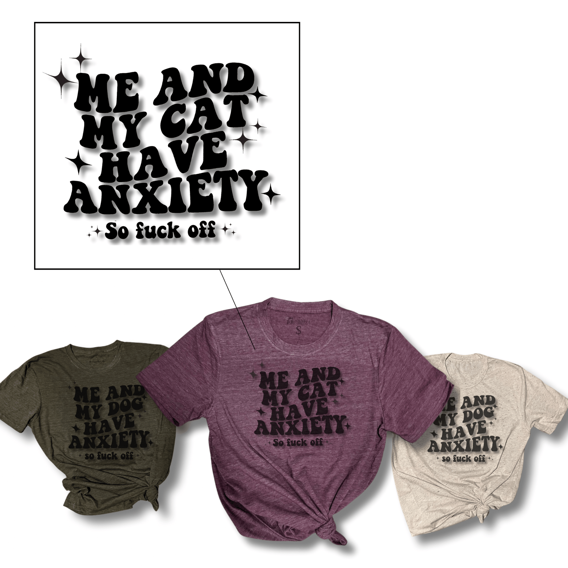 Embrace your dog obsession with our “Me & My Dog Have Anxiety, so Fuck Off” T-Shirt, available in three colors – Oatmeal, Burgundy, and Army Green. Crafted from a luxurious tri-blend of cotton, rayon, and polyester, this very soft, high-quality T-Shirt is proudly made in the USA. Choose any pet to personalize your statement. Sizes range from XS to 3XL, ensuring a comfortable fit for everyone. For care, hand wash or use the delicate cycle, and opt for low temperature drying or air drying. Express your love for dogs and your sense of humor.