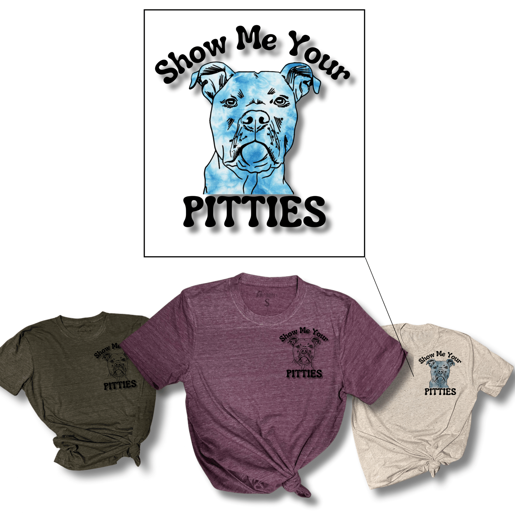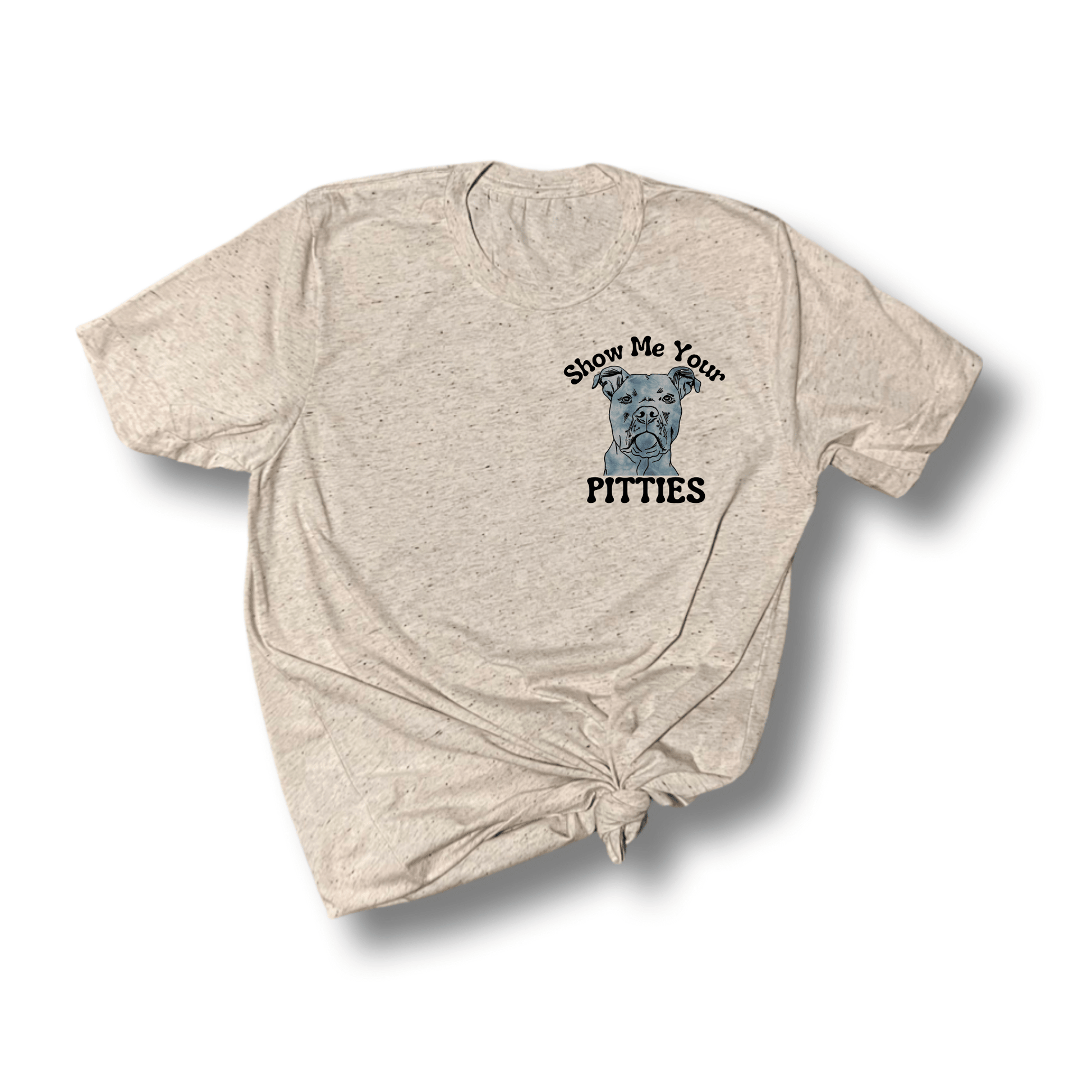 Introducing our "Show Me Your Pitties" Sweatshirt – a playful and stylish expression of love for our four-legged friends. This T-Shirt comes available in three colors – Oatmeal, Burgundy, and Army Green. Crafted from a luxurious tri-blend of cotton, rayon, and polyester, this very soft, high-quality T-Shirt is proudly made in the USA. Choose any pet to personalize your statement. Sizes range from XS to 3XL, ensuring a comfortable fit for everyone. For care, hand wash or use the delicate cycle, and opt for low temperature drying or air drying. Express your love for dogs and your sense of humor.